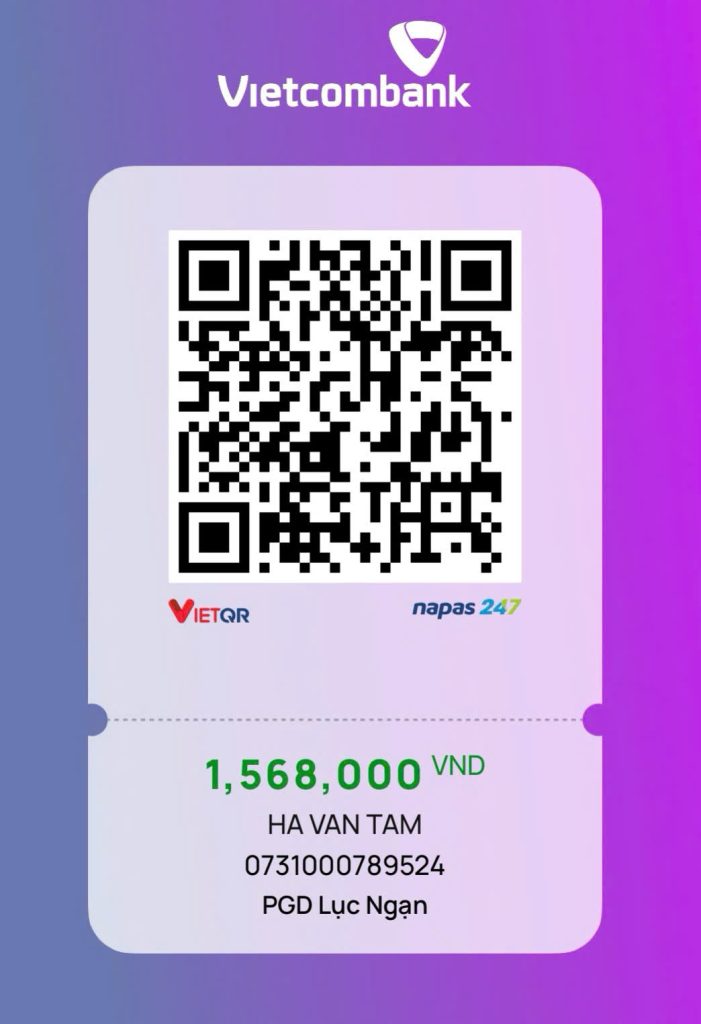 Chỉ nhận thanh toán qua STK Vietcombank 0731000789524 – HA VAN TAM